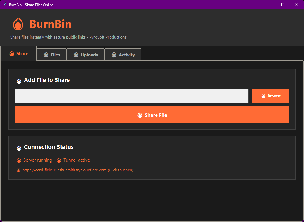A simple, user-friendly Python application that allows you to share files online with public links using Cloudflare Tunnel.